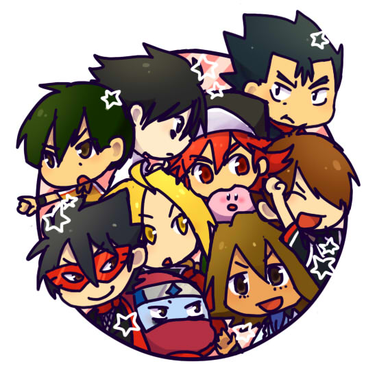 ジャンルごちゃごちゃすぎてどこに置けばいいのやら… 左上から右に向かって、 真田(テニス)/L(デスノ)/キョウ(ポケ)/レッド(GR)/エド(鋼) カケルくん(ポプ)/カービィ/神尾(テニス)/ヨシオ(ポプ)/ロミ夫(ポプ) うーんなんてカオス…
